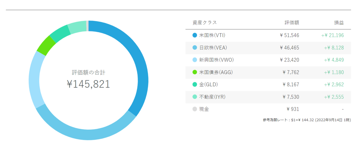 米国株(VTI),米国債券(AGG),不動産(IYR),日欧株(VEA),